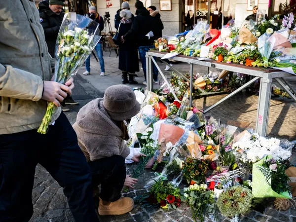 Mourners and well-wishers gathered outside Le Constellation in Crans-Montana, leaving flowers and candles at makeshift memorials. A flower with a note was laid after the fire that broke out overnight on January 1, 2026. One handwritten message at the scene read, “RIP you are all our children.”