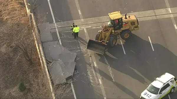 The Illinois State Police said troopers were dispatched to the two-vehicle collision. Large sections of sheet metal separated from the semi and scattered across both expressways, leaving the left three lanes of the Kennedy blocked and the three right-hand lanes on the Edens side obstructed by heavy debris. One person was taken to a nearby hospital; officials have not released that individual’s condition.